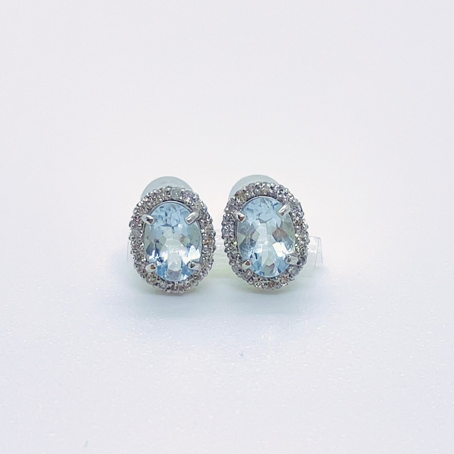3月の誕生石、アクアマリンにレメダイヤで輝きをプラスしたスタッドピアスです。